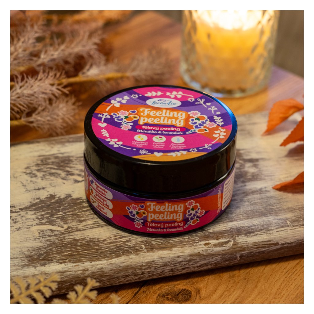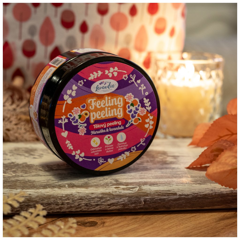 Doprajte svojej pokožke láskyplnú starostlivosť s naším hydratačným telovým peelingom Feeling Peeling – Marhuľa & Levanduľa 🍑💜