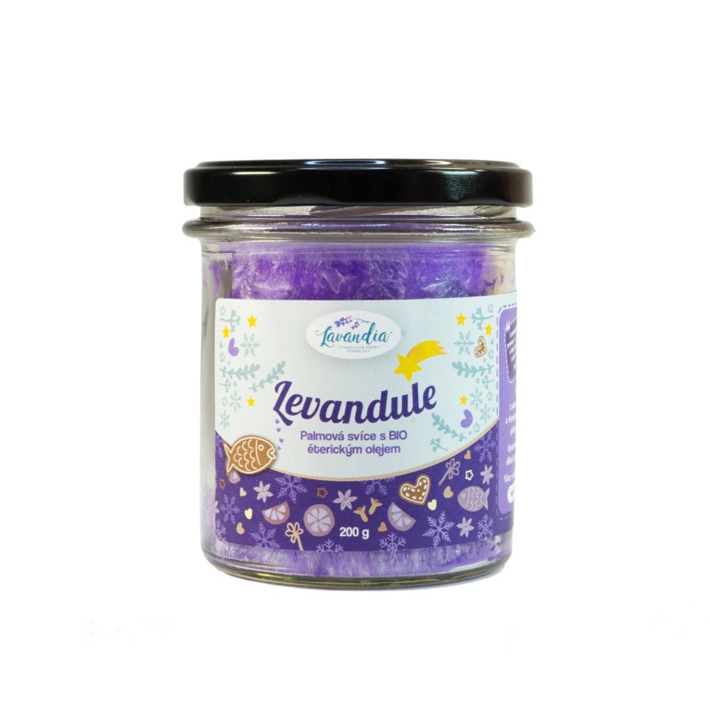 Zloženie: 100% palmový vosk, éterický BIO levanduľový olej.